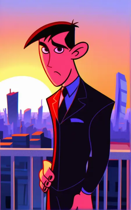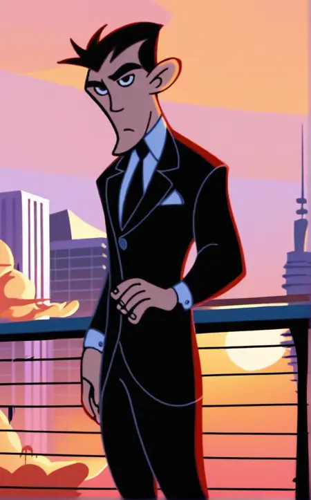 male_KimPossibleTV_ownwaifu, flat color, parody, 1boy, male focus, short hair, {suit | shirt},