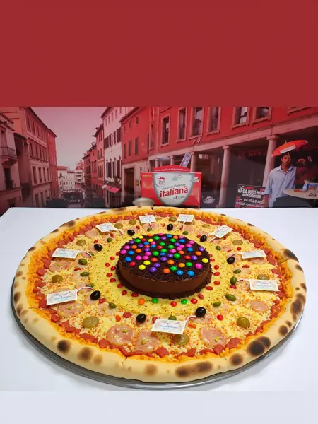 Create a pizza with any toppings you want. The more, the better!