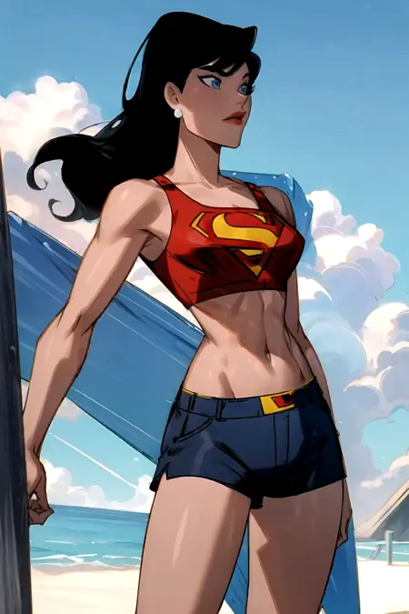 これは1996年のDCアニメーションユニバース、特に『スーパーマン:ザ・アニメーテッド・シリーズ』に登場するロイス・レーンのLoRAです。