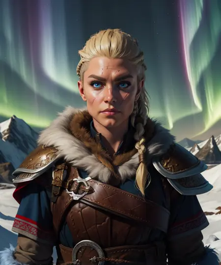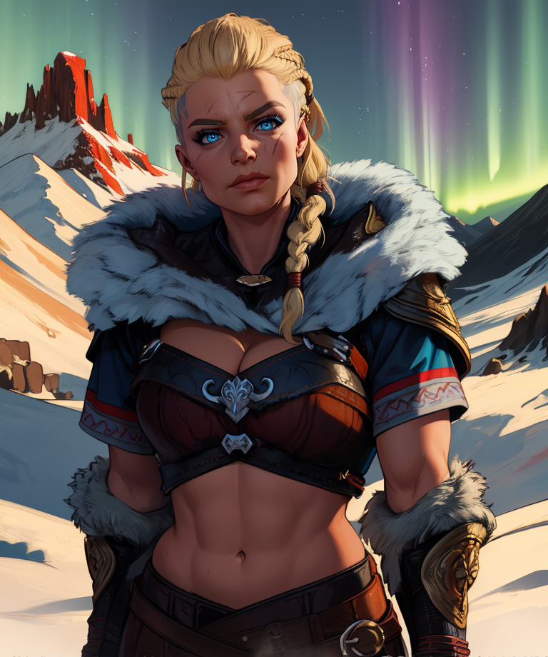 Eivor,脸颊疤痕,金发,蓝眼睛,——侧辫或单辫