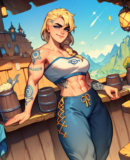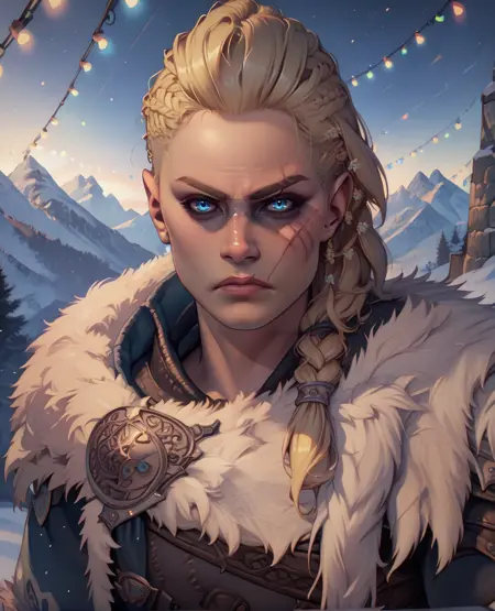 Eivor, 볼 흉터, 금발 머리, 파란 눈, --- 옆머리 비녀 또는 단일 비녀,