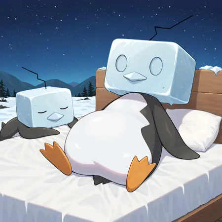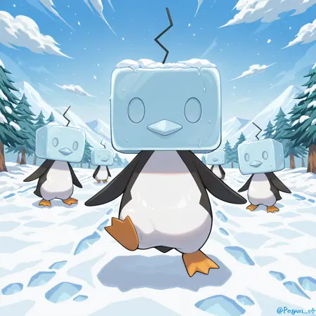 최고의 긍정적 입력: (eiscue, pokemon, 펭귄, 통통한, 파란 머리, 얼음 덩어리)