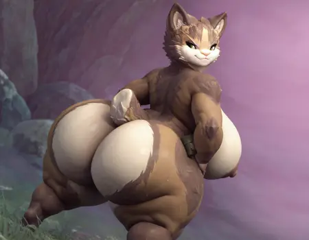shortstack,female chirt,alien tech outfit,black shoes,goggles on her forehead,brown and white fur skin,tail,green eyes