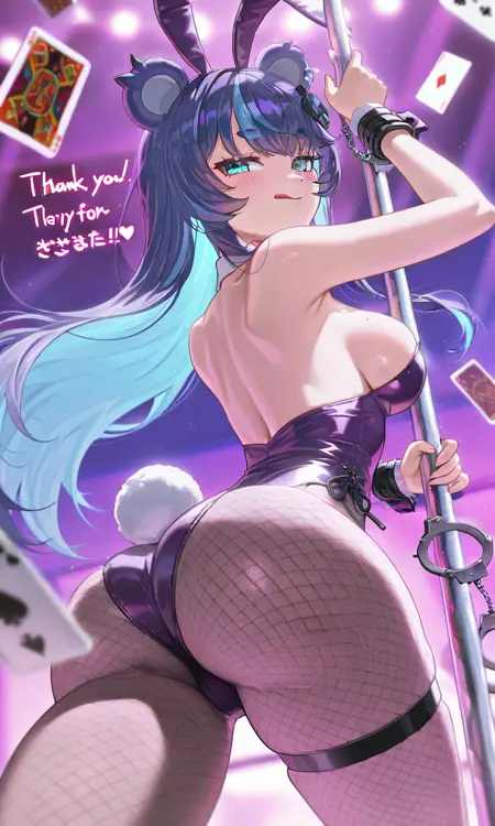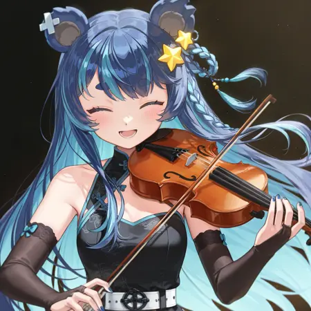 Blue Haired Violin Playing Bear Girl Vtuber