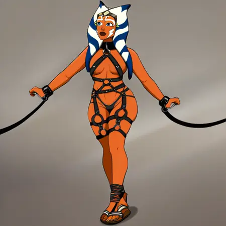 ahsoka tano (slave-1), ahsoka tano (slave-2), minimalist thong-style sandal design with straps that conect via decorative metal rings, foot jewelry sandals with straps,