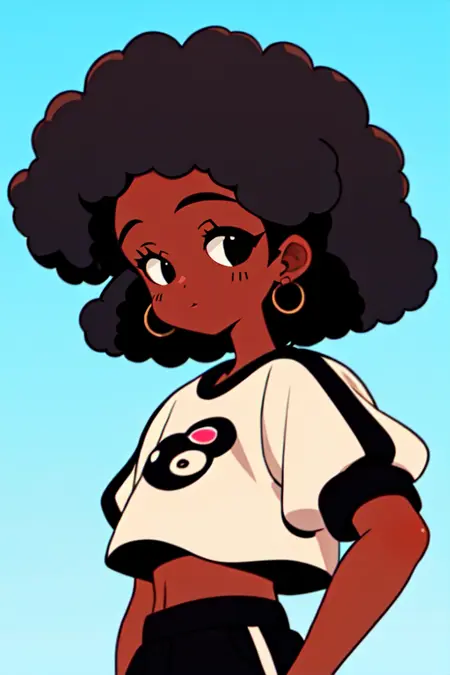 A clean and stylized illustration style with bold linework, flat shading, and a vibe that sort of reminds me of vintage comics. Dynamic head angles are common. This LoRA can be unpredictable on many checkpoints. AnythingV5 is best for this LoRA.