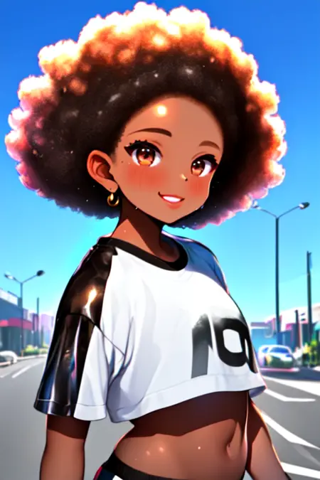 A very moe and glossy anime art style, with most characters having round and almost doll-like heads. Hair, clothing, accessories and character surroundings are very shiny and almost holographic. A lot of checkpoints are compatible, but AnythingV5 renders it cleanest.