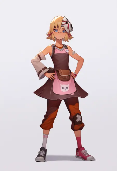 Outfit prompts : apron, boots, detached sleeves, pants, sneakers