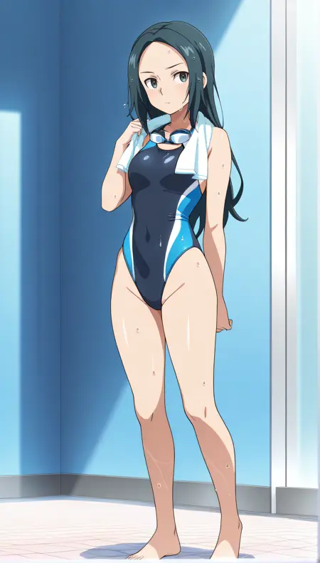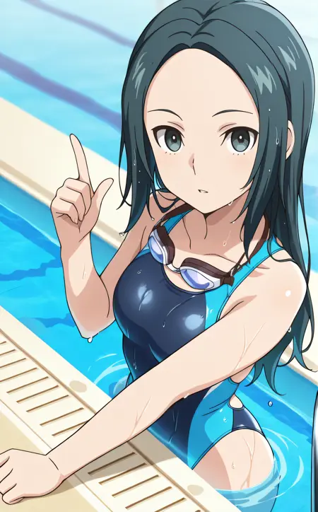 该模型旨在仅通过颜色提示即可还原她的发型。因此,如果你想生成她披发的图像(如泳装图像),请在负面提示中添加“(发髻,髻,马尾)”。