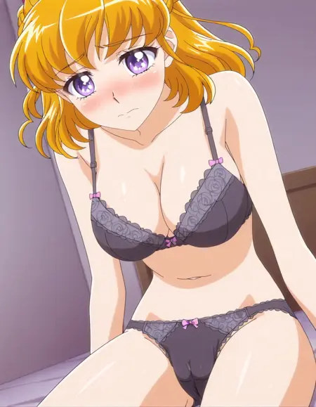 score_9, score_8_up, score_7_up, 动画截图, 单人,1女孩,asahinamiraimd, 蓝色裙子, 短袖, 粉色衬衫, 蓬松袖子, 紫色眼睛, lora:asahinamiraimd:0.8