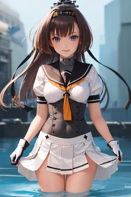 默认服装: akizukidef, ahoge, 马尾辫, 发带, 校服, 白色serafuku, 黑色束腰, 白色短裙, 手套