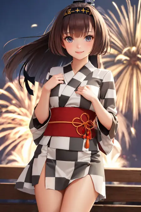 2016年秋季: akizukiautumn, ahoge, 马尾辫, 发带, 格子衣服, 和服, 腰带