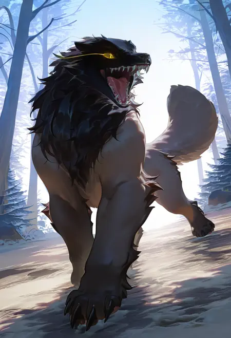 fluffyrock-576-704-832-960-1088-lion-low-lr-e83-offset-noise-e68で学習、Yiffymix 3.1でテスト。