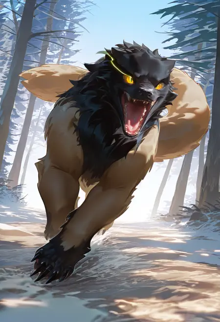 推奨されるポジティブタグ:wulg、黄色い目、複色の毛、白い尾、黒い胸のえり