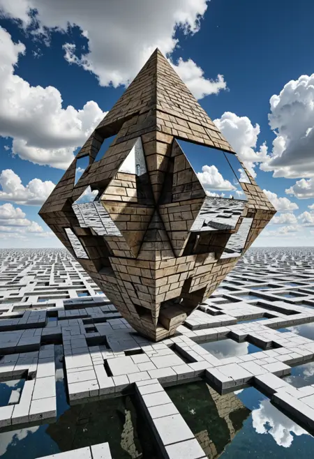 에셔 스타일 이미지를 생성하기 위한 "테스트" 케이스입니다. 그러나 제가 서로 다른 에셔 기법으로 학습한 두 개의 LORA를 결합했기 때문에, 이 모델은 스스로 독특한 방식으로 작동하며 항상 기대를 충족시키지는 않습니다. 다만 약간 다른 결과를 만들어냅니다. 너무 많은 지시나 긴 프롬프트를 사용하지 마세요. 간단하게 유지하세요. 또한 임의의 시드로 항상 그림을 생성하지는 않습니다. 일관된 결과를 얻으려면 적절한 시드를 찾아 사용하세요.