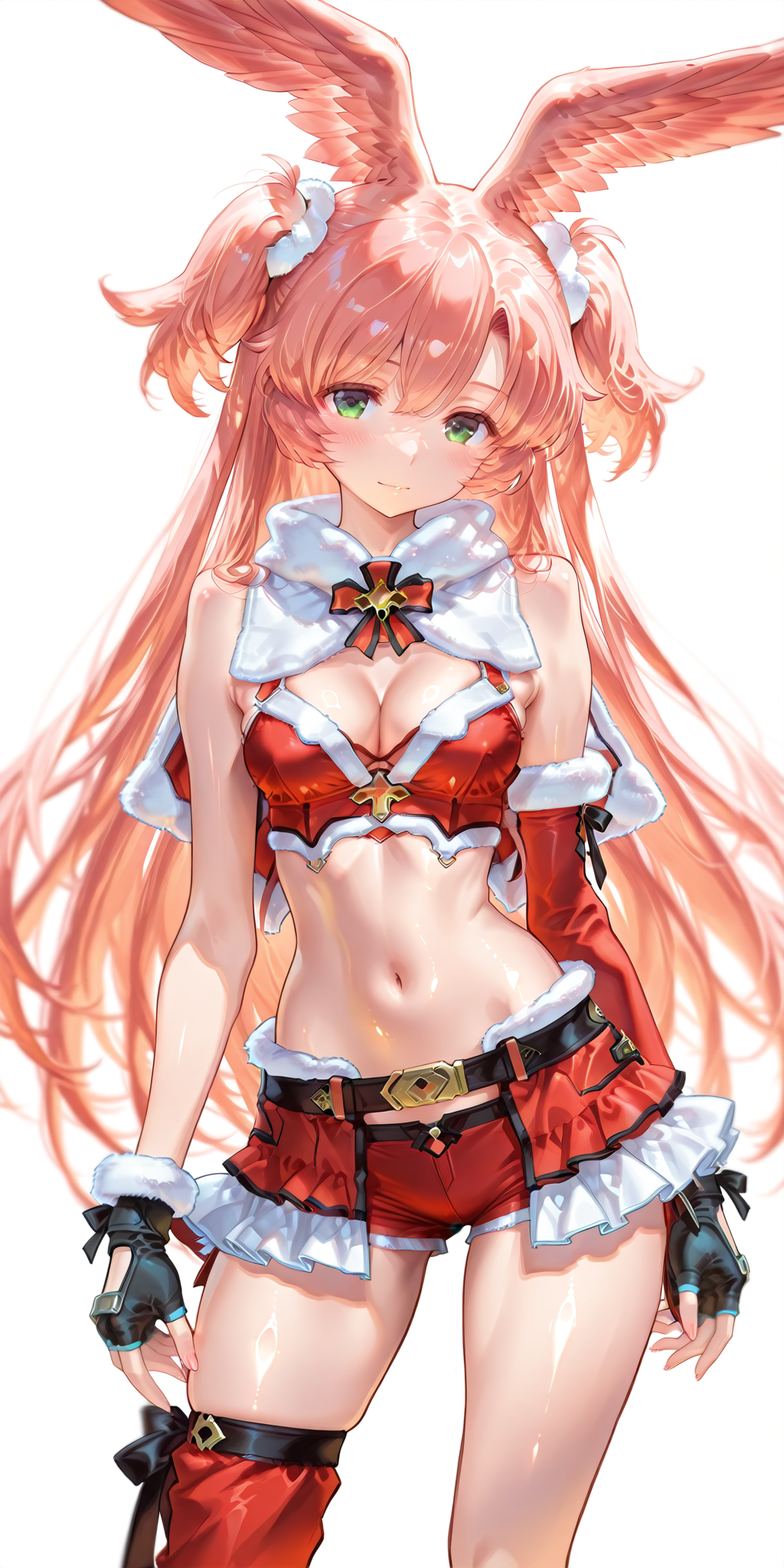 | トレーニングワード | long hair,breasts,detached skirt,mini skirt,pink hair,gloves,cleavage,bare shoulders,green eyes,pink hair,small breasts,head wings,elbow gloves,red bra,fingerless gloves,two side up,fur trim,capelet,ead wings,red shorts,:<,asymmetrical legwear,red thighhigh,asymmetrical clothes,fur collar,navel,コピーしました! |