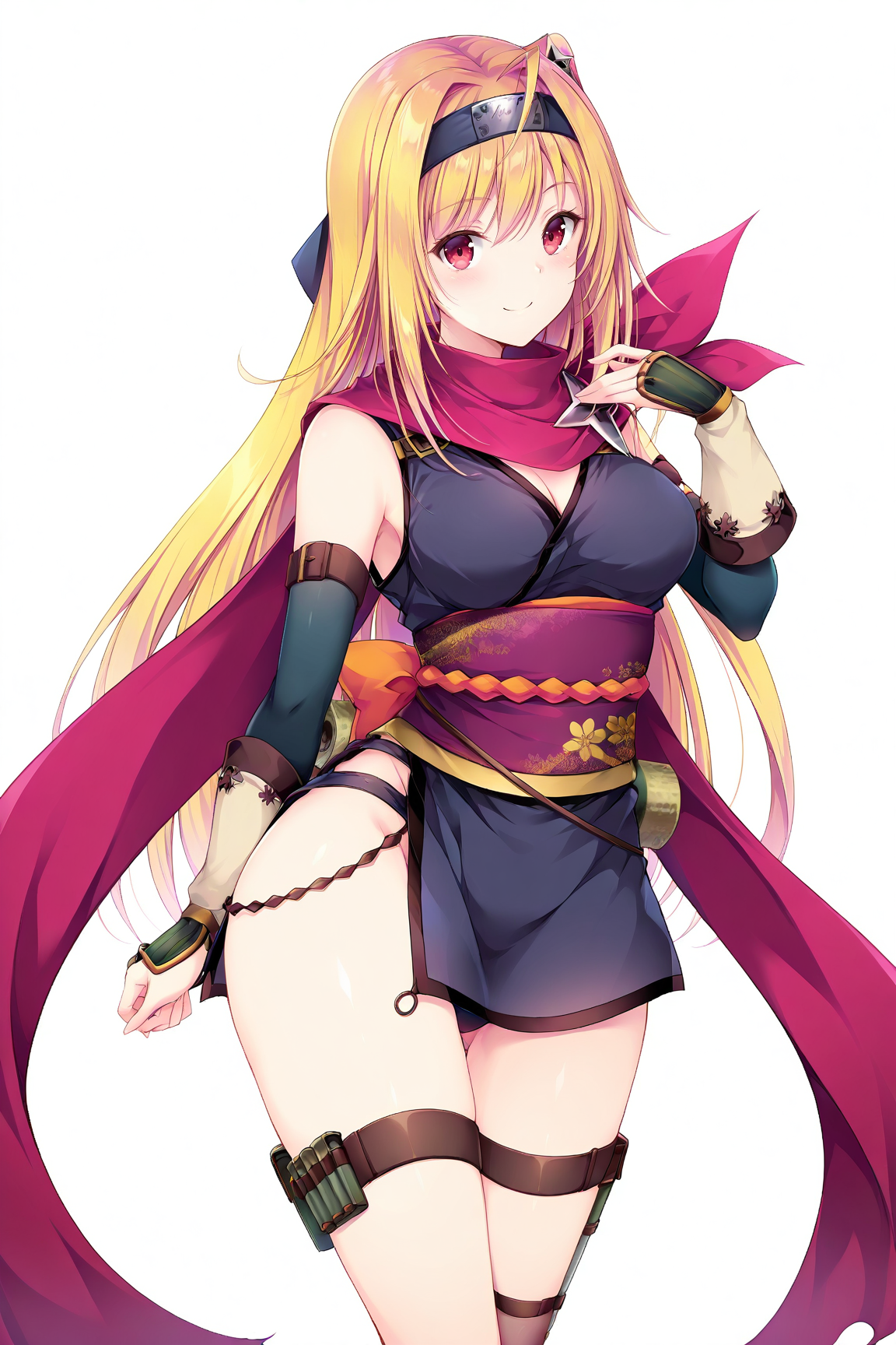 {忍者}:くノ一、忍者ヘアバンド、スカーフ、紫の帯