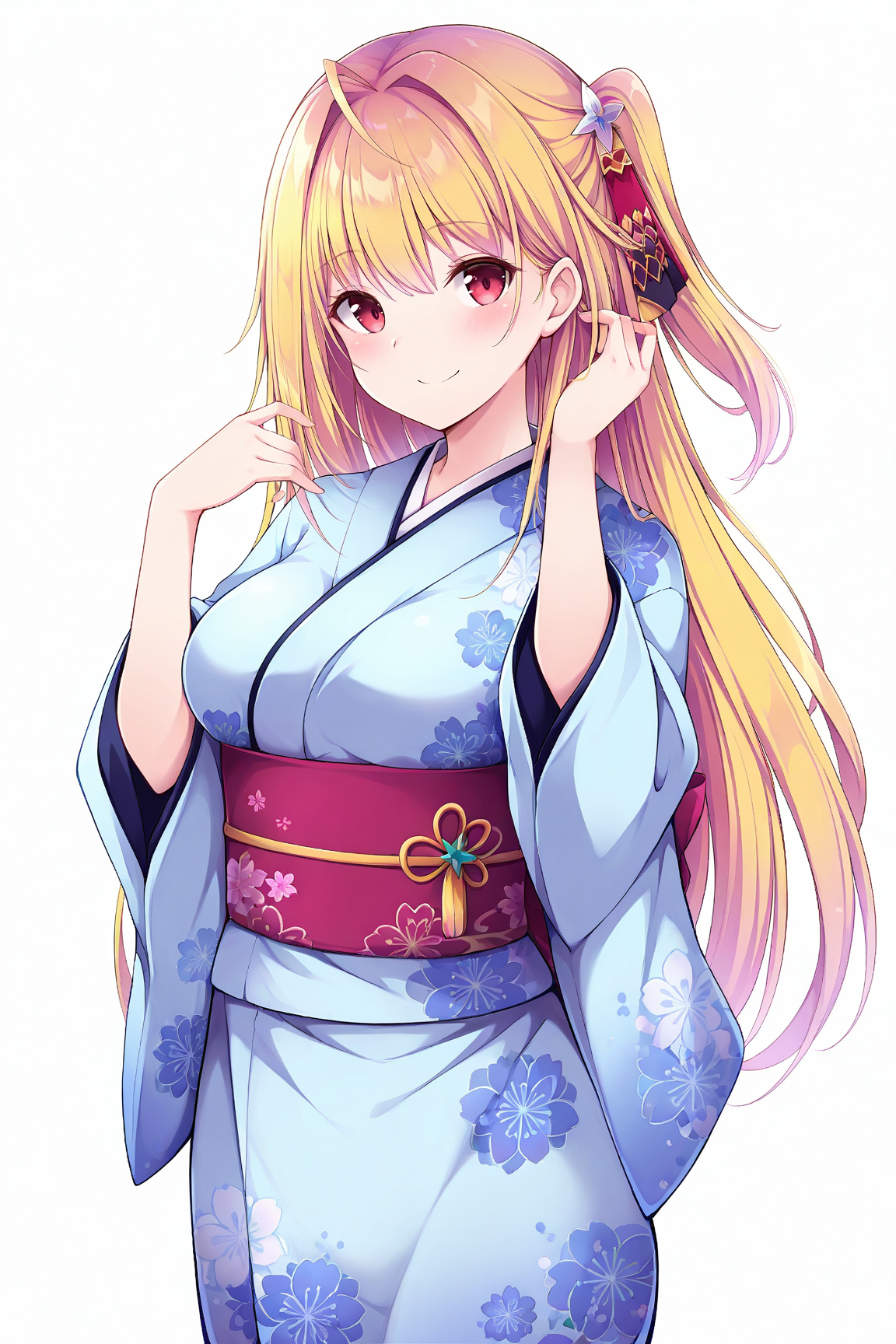 カノン・メイフィールド、赤い目、金髪、髪が顔を覆う、目の間の髪、サイドテール、サイドヘア、アホ毛、