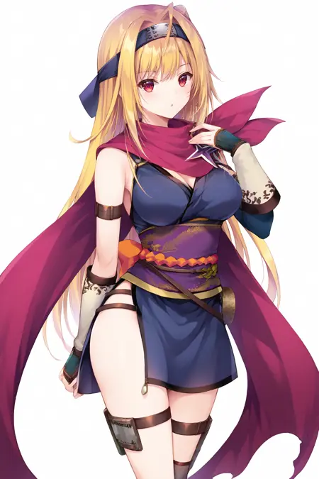{忍者}:女忍者,忍者头带,围巾,紫色腰带