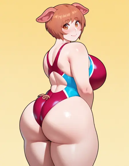 "okupd, short hair, pig ears, pig girl, plump, brown hair, brown eyes"