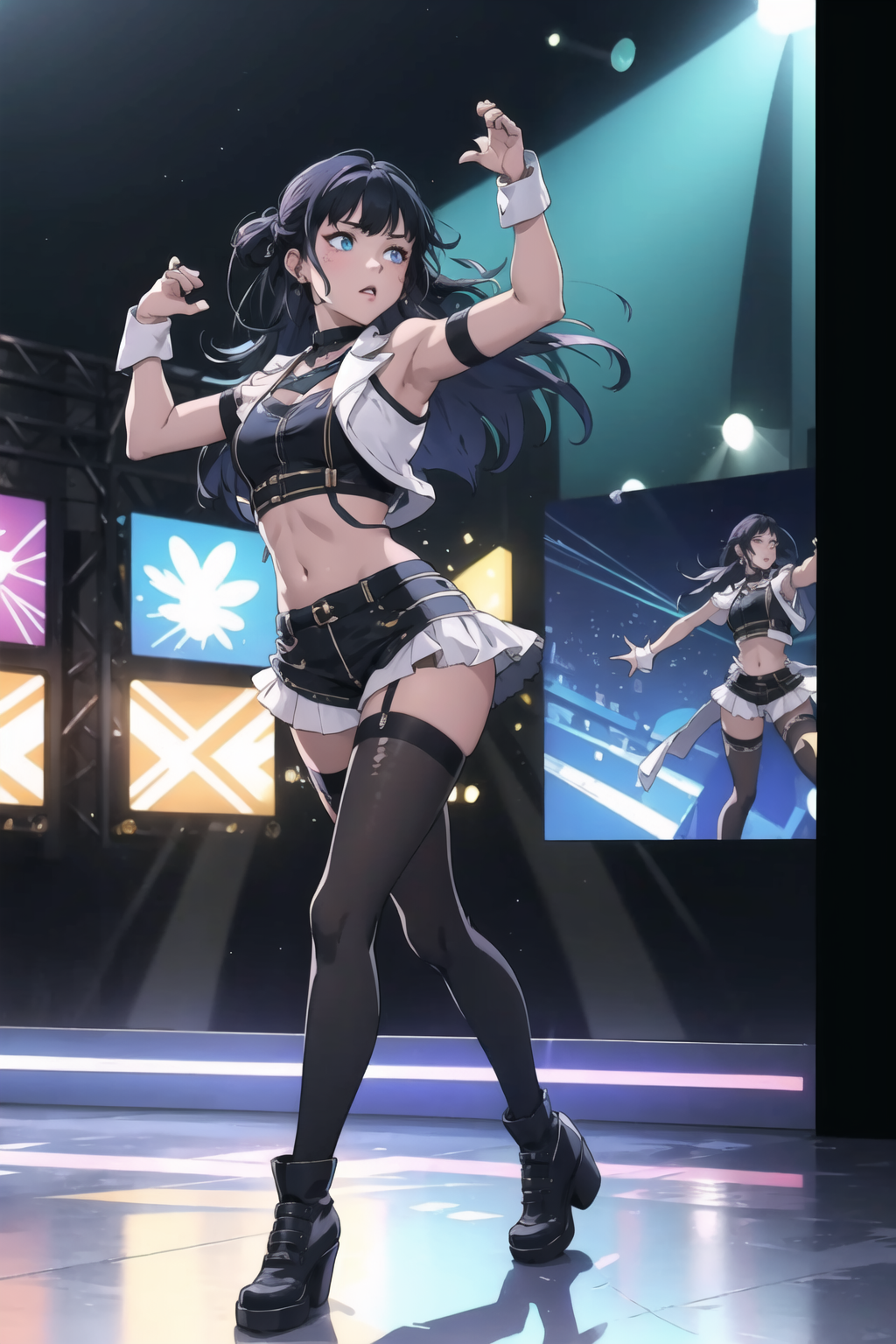 stage, stage lights - 彼女を舞台上に置きたい場合に使用。