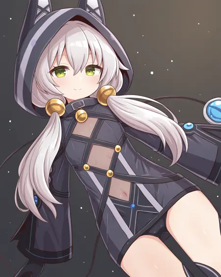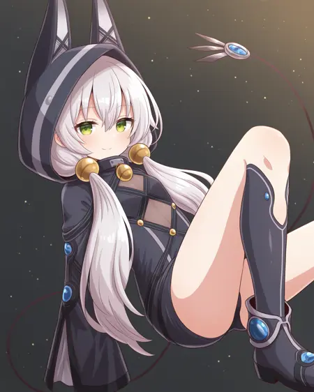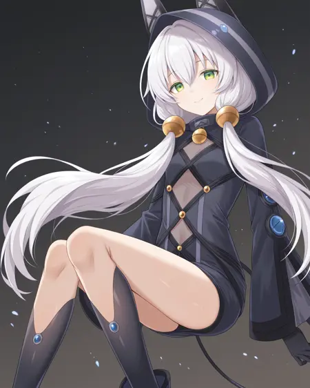 <lora:AltinaOrionBlackRabbit_Illustrious:1>, Altina Orion, 흰 머리, 긴 머리, 낮은 트윈테일, 측면 머리카락, 녹색 눈, 평평한 가슴, 동물 헤드 커버, 가짜 동물 귀, 검은 바디수트, 무릎 위 부츠,