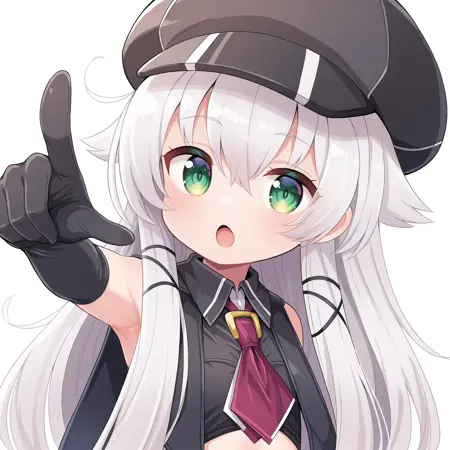 <lora:AltinaOrionThors_Illustrious:1>, Altina Orion, 흰 머리, 긴 머리, 측면 머리카락, 띠 리본, 녹색 눈, 평평한 가슴, 검은 모자, 파란 셔츠, 학교 유니폼, 치마, 검은 팬티후스, 흰 부츠,