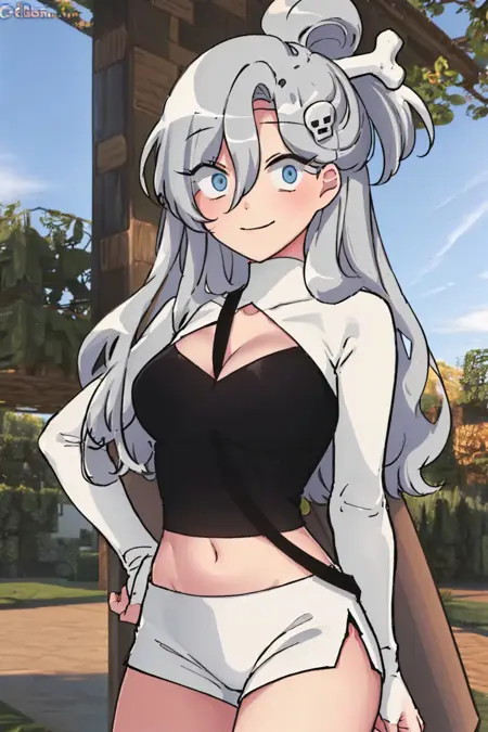 Trigger + Appearance: bbpskeleton, hair between eyes, skull hair ornament