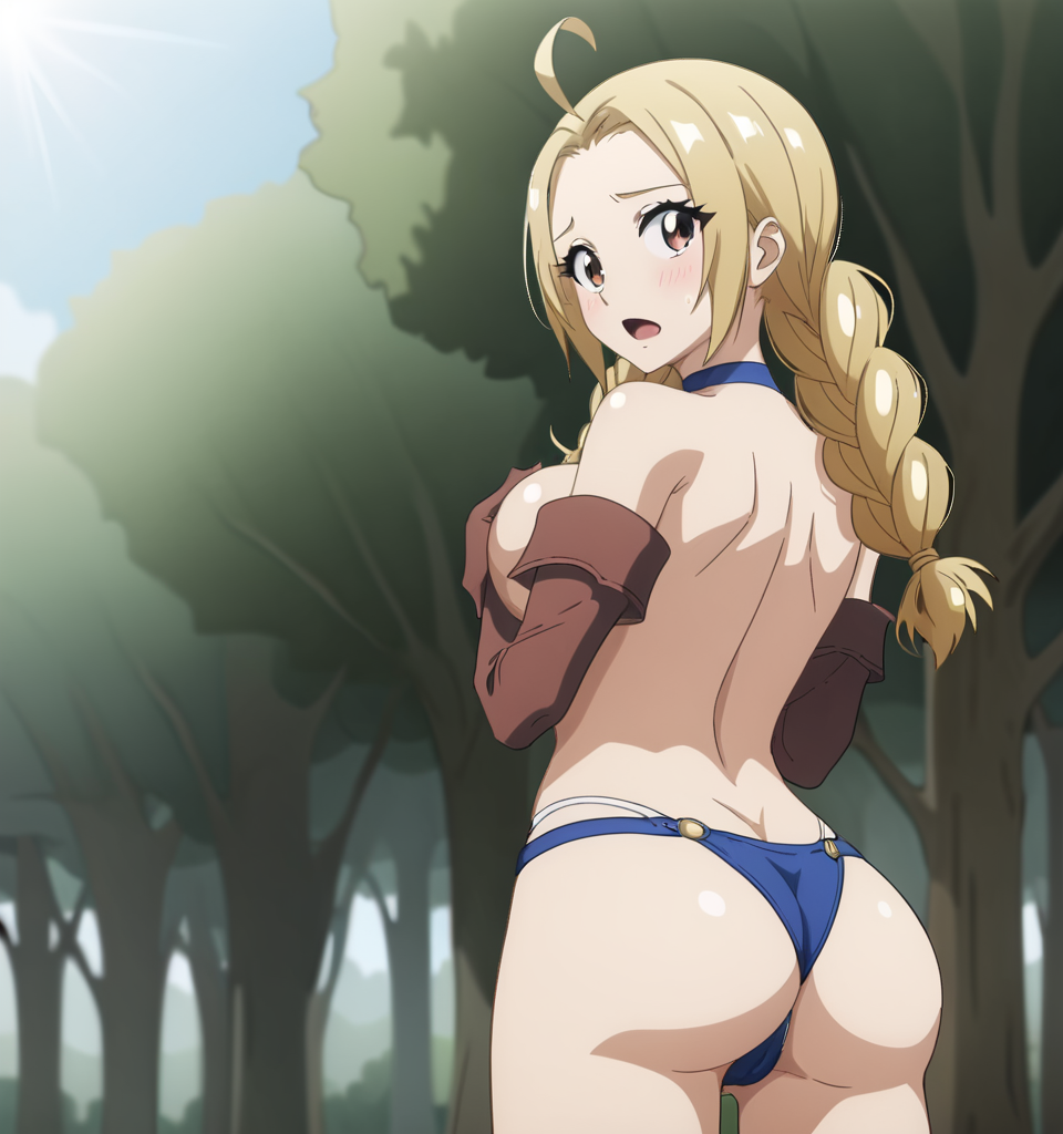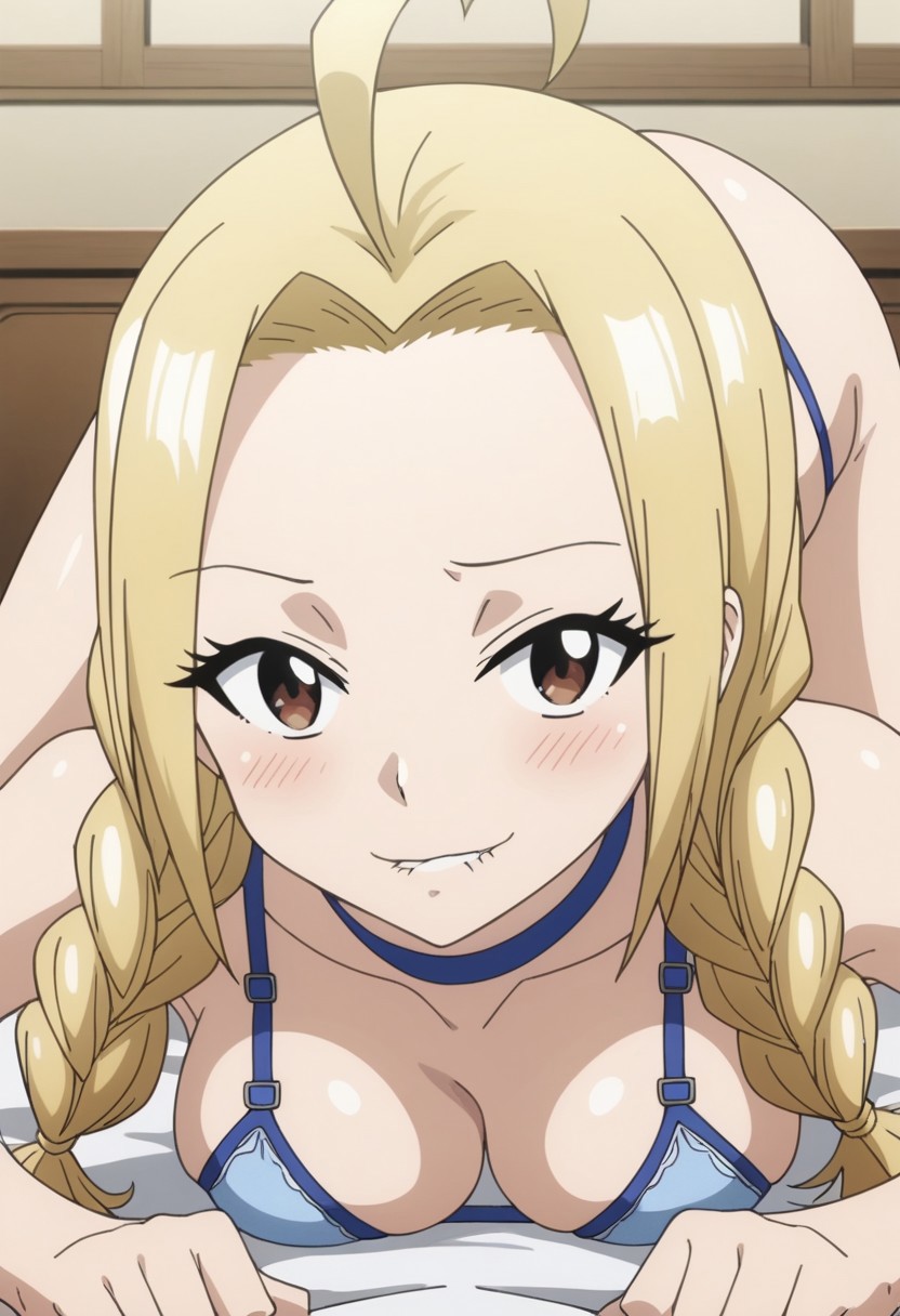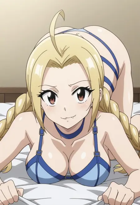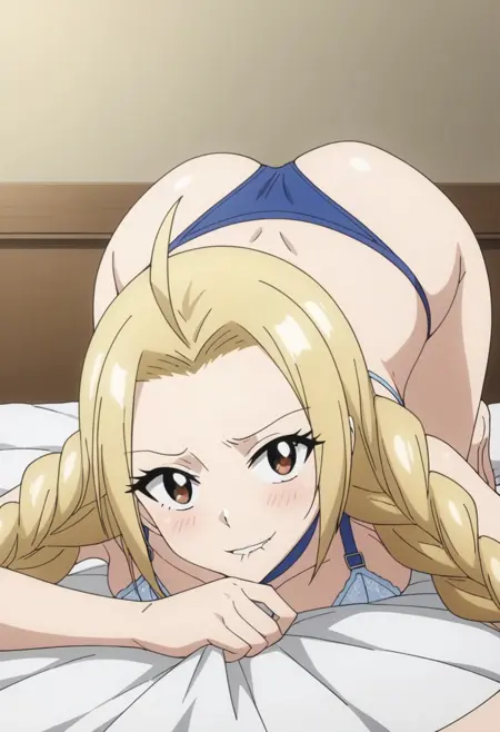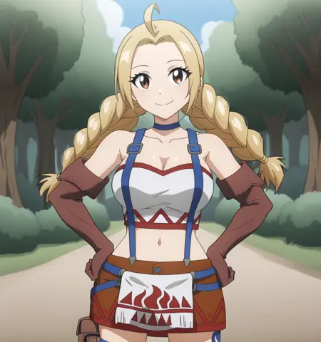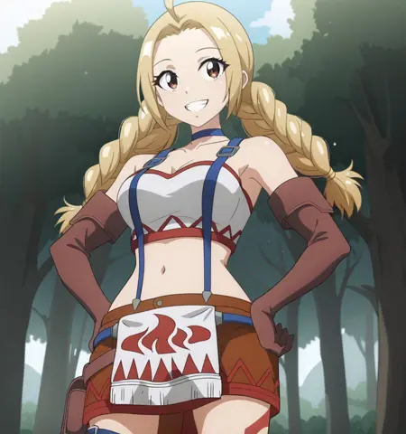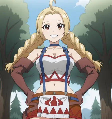 arche, blonde hair, pigtails braids, ahoge, brown eyes, large breast