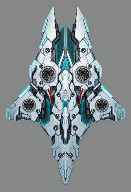 회색 배경 위의 Starsector 우주선의 2D 스프라이트 상단 보기.
