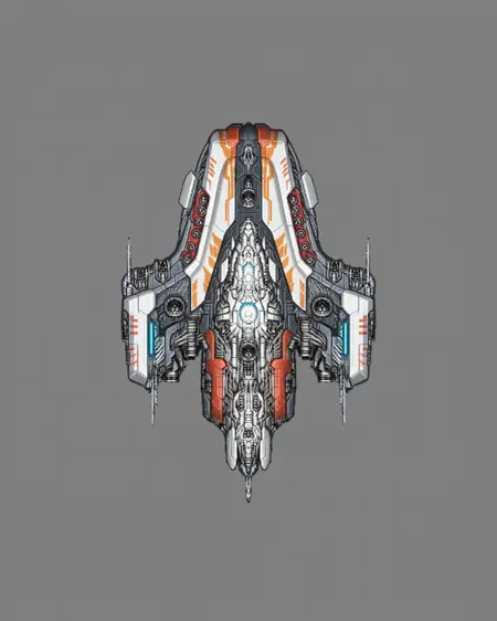 在灰色背景上,从上方视角看到的Starsector飞船的2D像素图。
