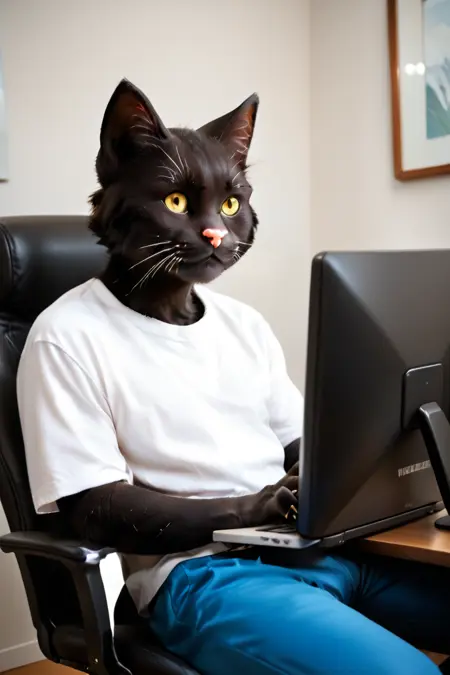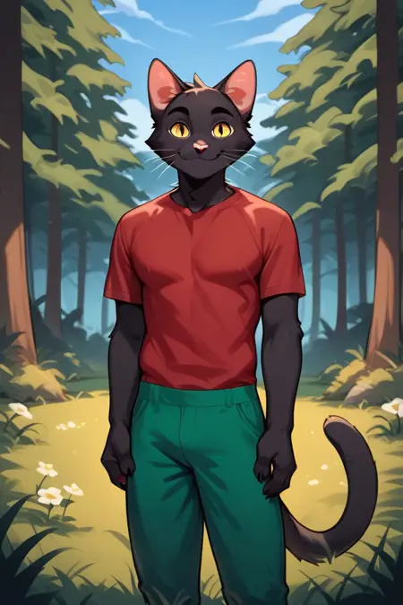 标签:k3k,拟人化,公兽人,家猫,黑色毛发,黄色眼睛,粉色鼻子,尾巴
