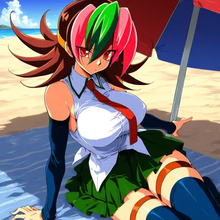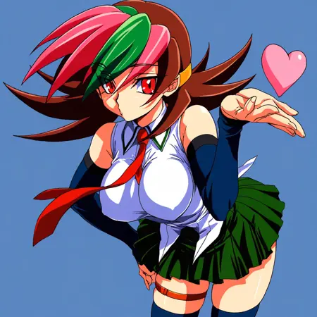 | 학습된 단어 | sai hinoki, sai_hinoki, betterman, dyed bangs, brown hair, multicolored hair, green hair, pink hair, two-tone hair, medium hair, red eyes, large breasts, thighhighs, detached sleeves, thigh strap, necktie, skirt, bare shoulders, school uniform, 1girl, solo복사됨! |
