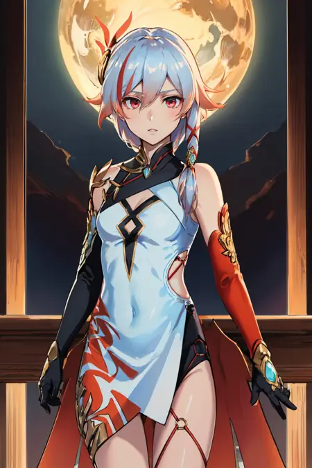 Default Outfit: china dress, sleeveless dress, single thighhigh, gloves, bare shoulders