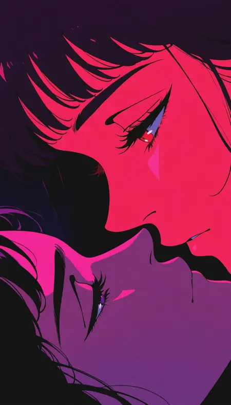 Trigger Word: melanch0ly, retro anime, 1990s, 1girl, 1boy, solo