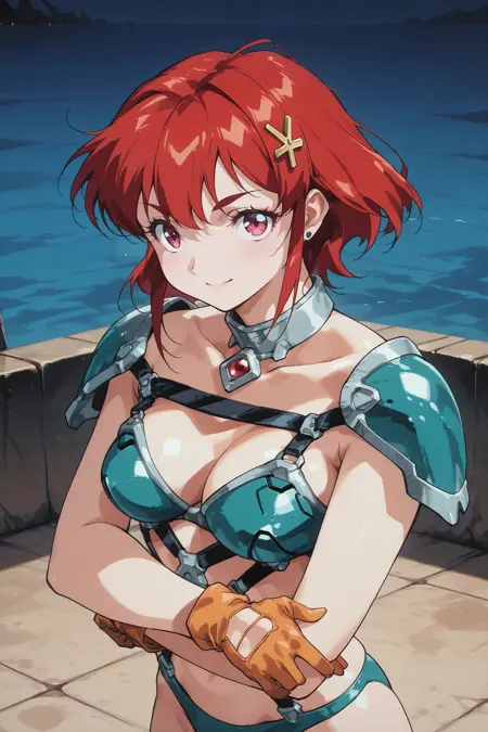 关键关键词:红发、红眼、短发、刘海、发饰、中等胸围 | 1980年代\(风格\),复古