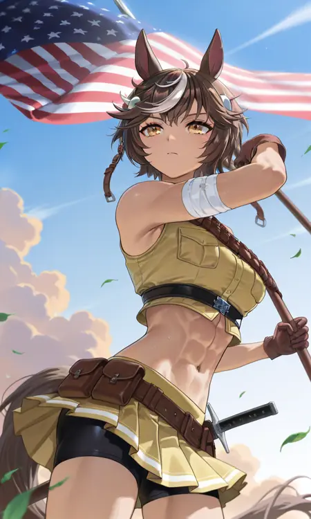 | Trained Words | tomoe umari, tomoe umari (1st costume), 1girl, animal ears, buruma, black buruma, black sports bra, sports bra, blush, breasts, brown eyes, brown gloves, brown hair, white hair, cowlick, gloves, horse ears, horse girl, horse tail, navel, tail, tan, teeth, toned, toned female, Copied! tomoe umari, 1girl, aviator sunglasses, bandaged leg, bandages, bike shorts under skirt, bow, breast pocket, breasts, brown bow, brown eyes, brown gloves, brown hair, crop top, dark-skinned female, dark skin, ears through headwear, gloves, gun, hair ears, handgun, hat, hat bow, holding, holding gun, holding weapon, horse girl, horse tail, large breasts, midriff, miniskirt, multicolored hair, navel, pocket, pouch, revolver, saber (weapon), sheath, sheathed, shirt, skirt, sleeveless, sleeveless shirt, smile, streaked hair, sunglasses, sweat, sword, tail, thigh strap, weapon, white hair, yellow hat, yellow skirtCopied! |