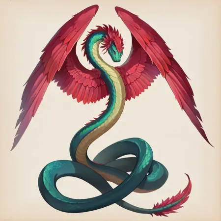Coatl-IL-V1.0, Coatl, snake, serpent, winged snake, winged serpent, wings, feathered wings, feathers