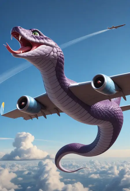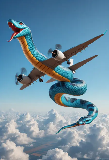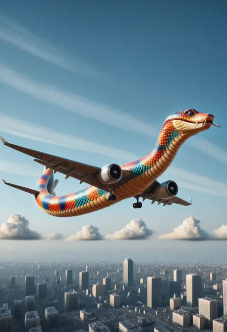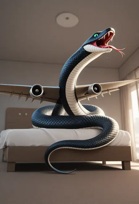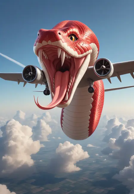 🐍 巳年の祭り 🐍 を祝って、私たちは「SnakePlane」を発表します。これは、蛇の優雅さと航空工学の驚異を融合させた革命的なAI画像モデルです。このユニークなモデルは、蛇の神秘的でしなやかな形態にインスピレーションを得て、従来のデザインの枠を超えた未来の航空機へと変貌させます。