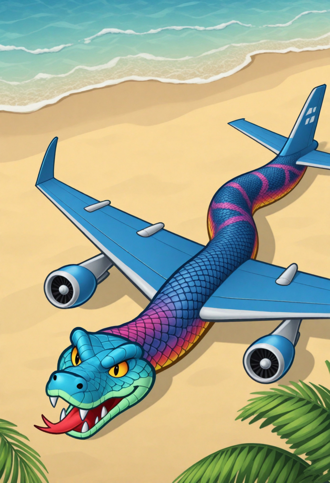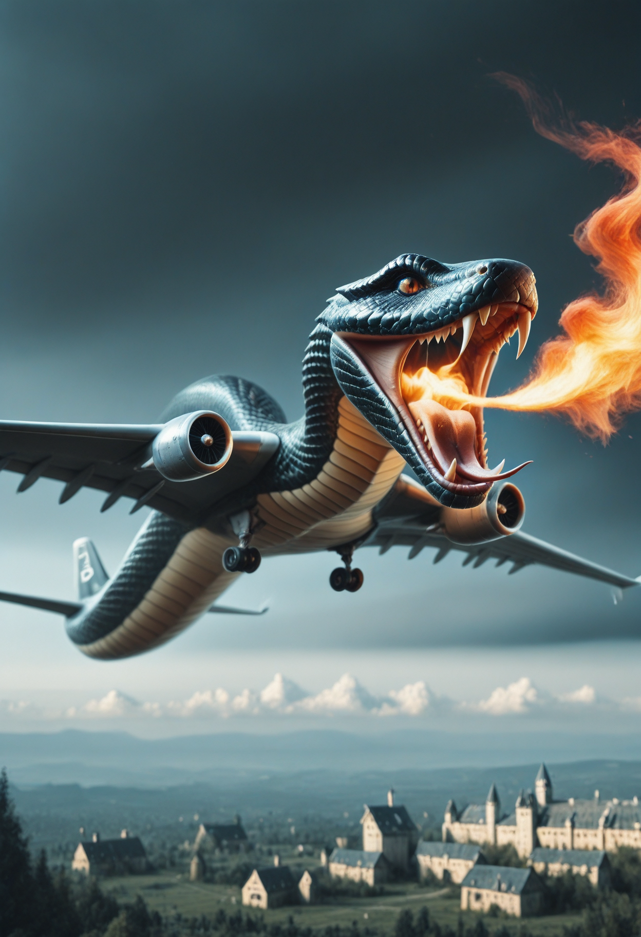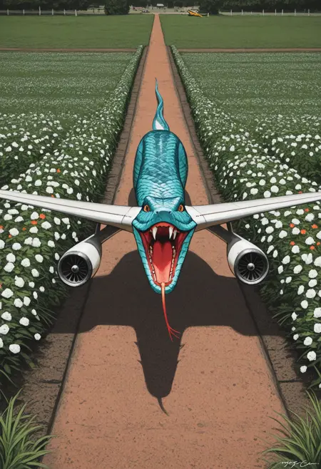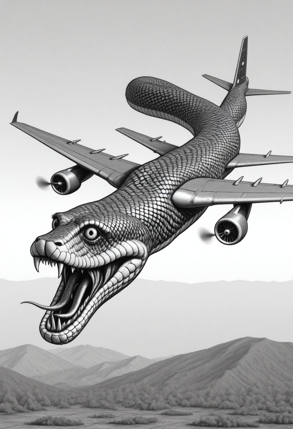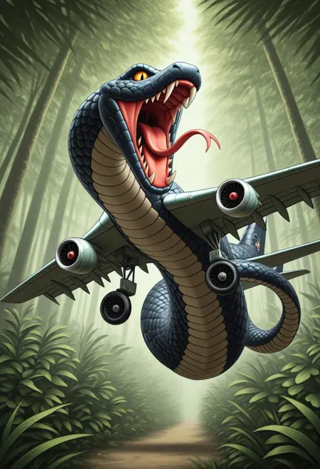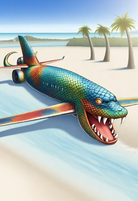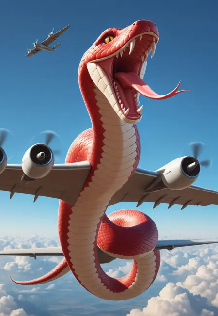 プロンプト:snakeplane aircraft, wings, scales, fangs