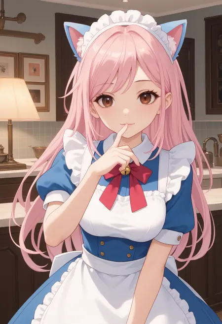 主要タグ: 1girl, solo, yandere, 茶色の目, 長い髪, ピンクの髪, 前髪, 動物の耳, 動物の耳のふわふわ, 猫の耳,