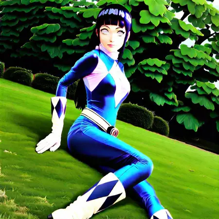 蓝力量战士,紧身衣,菱形图案服装,白色手套,头盔,蓝色头盔,光泽表面,三角龙头盔,蓝色点缀,白色腰带,鲜艳色彩,白色靴子,蓝色服装,枪套