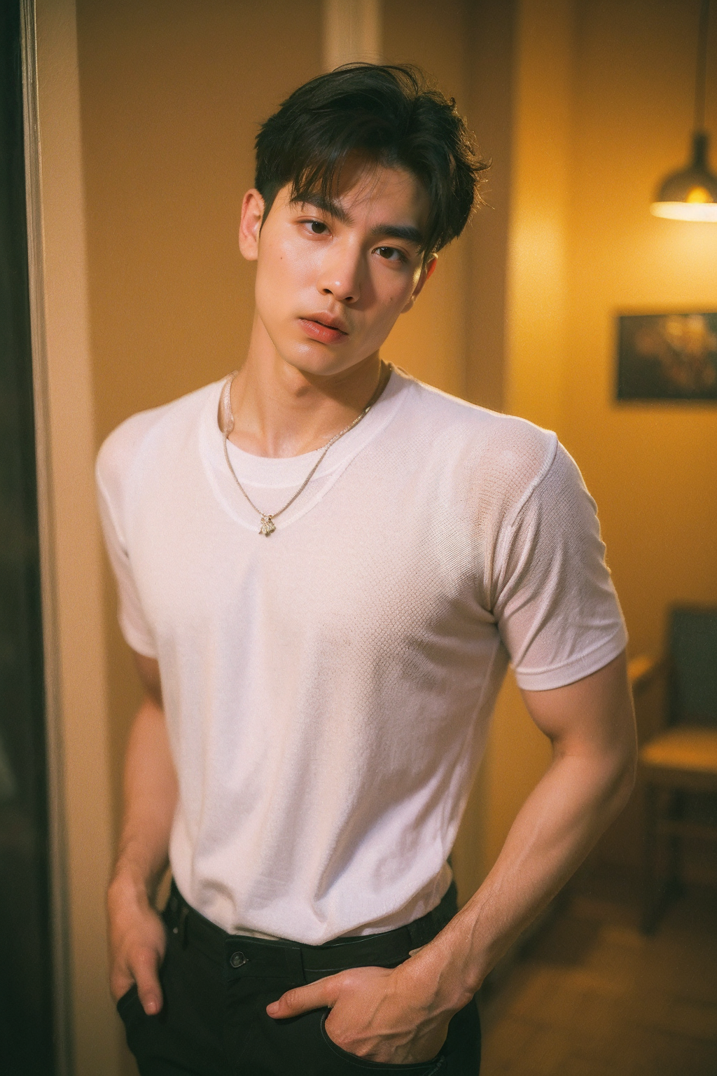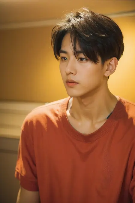 긍정적 키워드: Best Quality, Masterpiece, Ultra High Resolution, (Realisticity:1.4), Original Photo, Cinematic Lighting, 1boy,