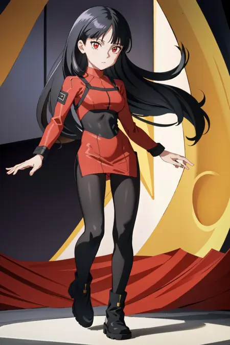 세대 1/2/FRLG: 검은 바디수트, 검은 머리카락, 빨간 치마, 빨간 셔츠