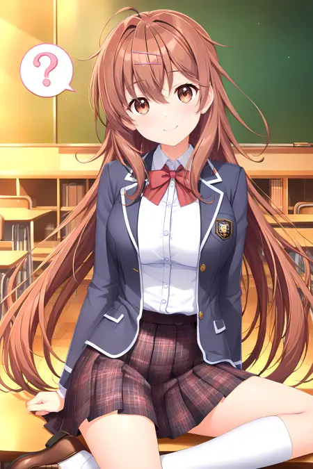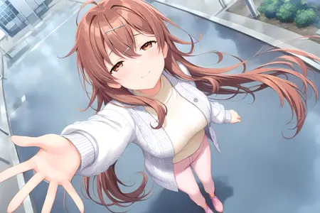 ベース: Aisa,茶色の髪,非常に長い髪,茶色の目,ヘアクリップ,髪飾り,アホ毛,前髪,眉間の髪
