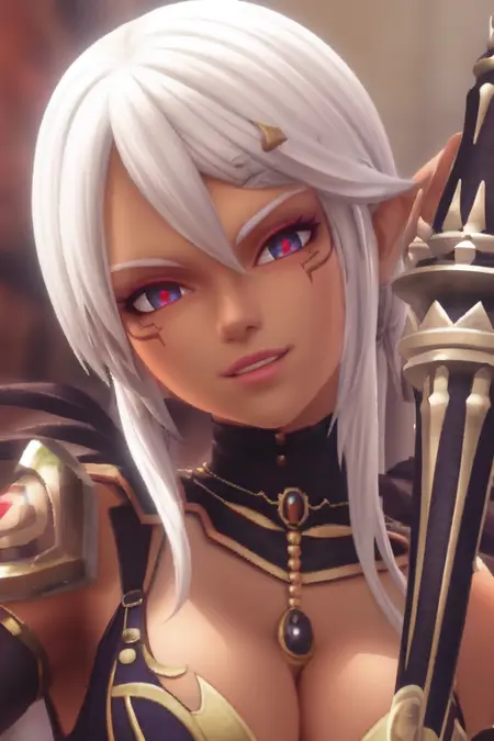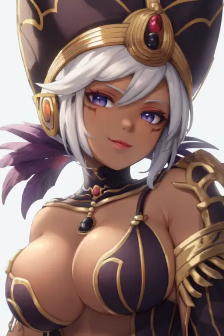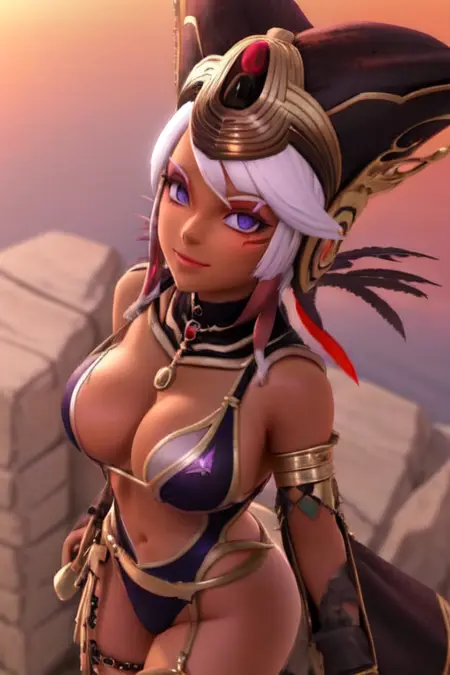 To prompt this character, enter "lora:Cia-HyruleWarriors-v1.1:strengthCia, dark-skinned_female," Additionally, to prompt her hat or her full helmet, prompt "jester hat, masquerade mask" respectively. This character is primarily trained on images of 3D models, to prompt her in 3D, prompt "3D model". To prompt her holding her sceptre, prompt "holding sceptre".