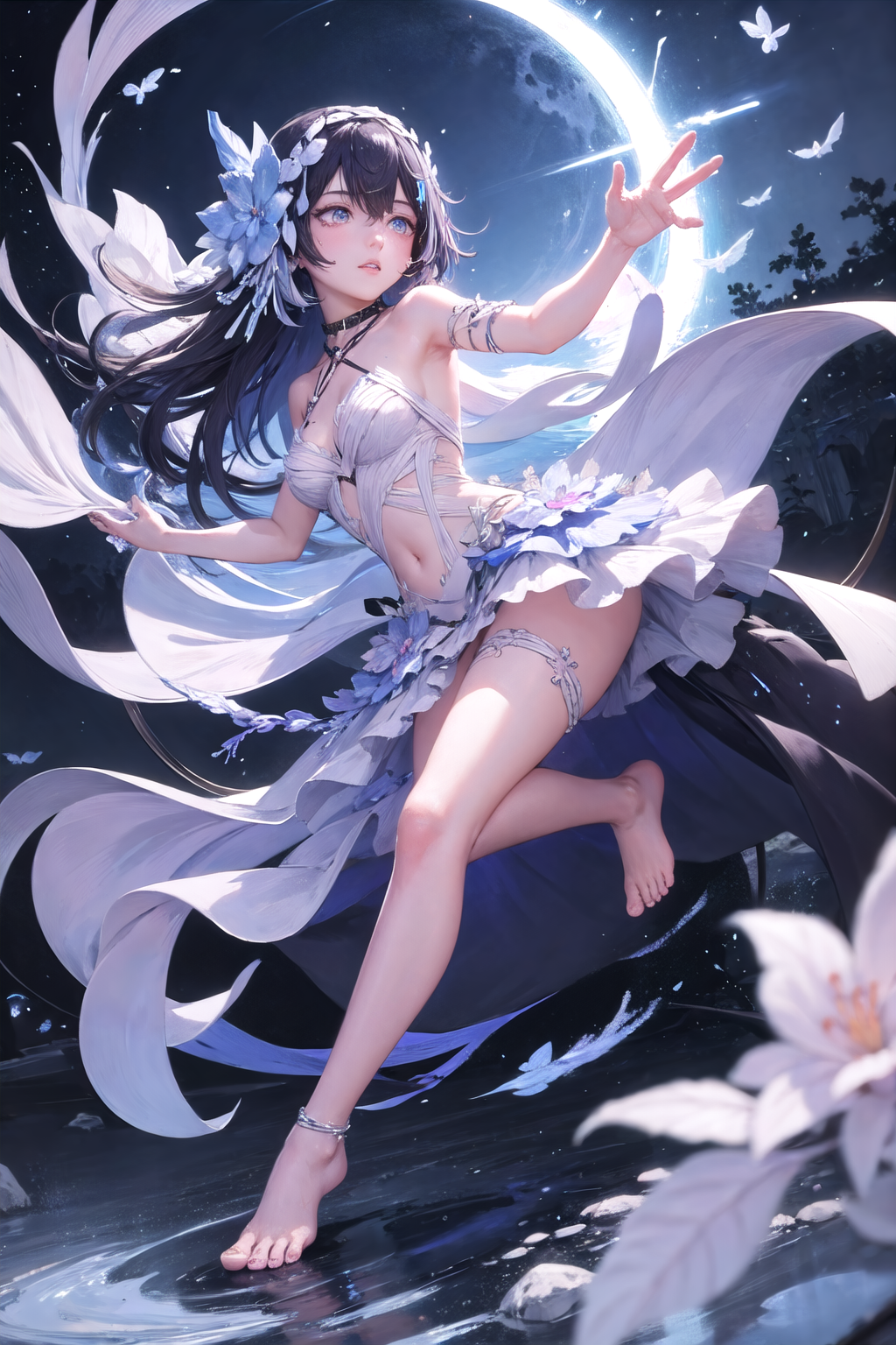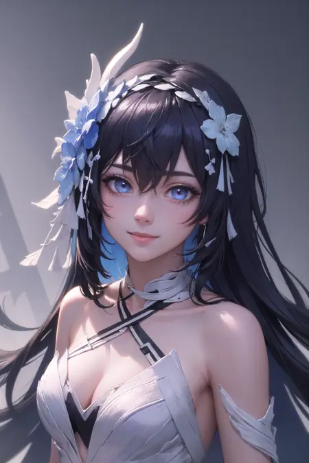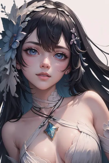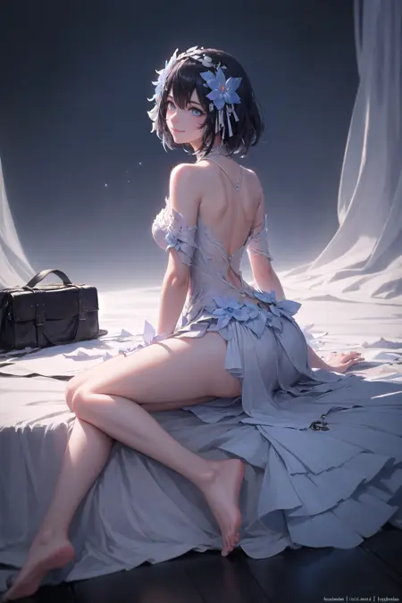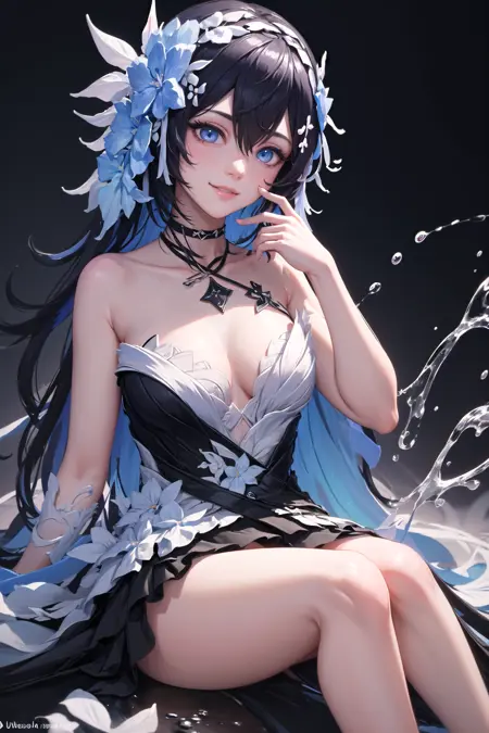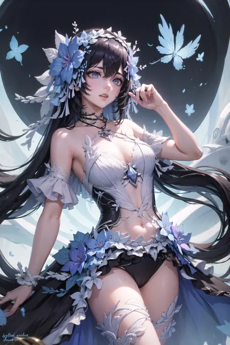 辅助词/附加词:蓝色眼睛,裙子,长发