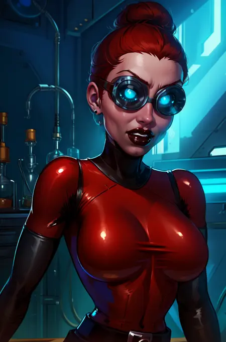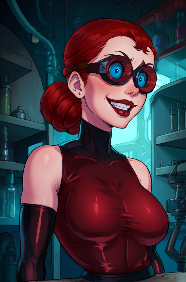 苍白、大护目镜, 红发,蓝眼,发髻,嘴唇,