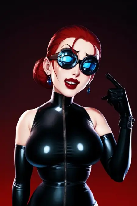 主要元素: 黑色肘部手套,红色紧身衣,黑色大腿靴,腰带,