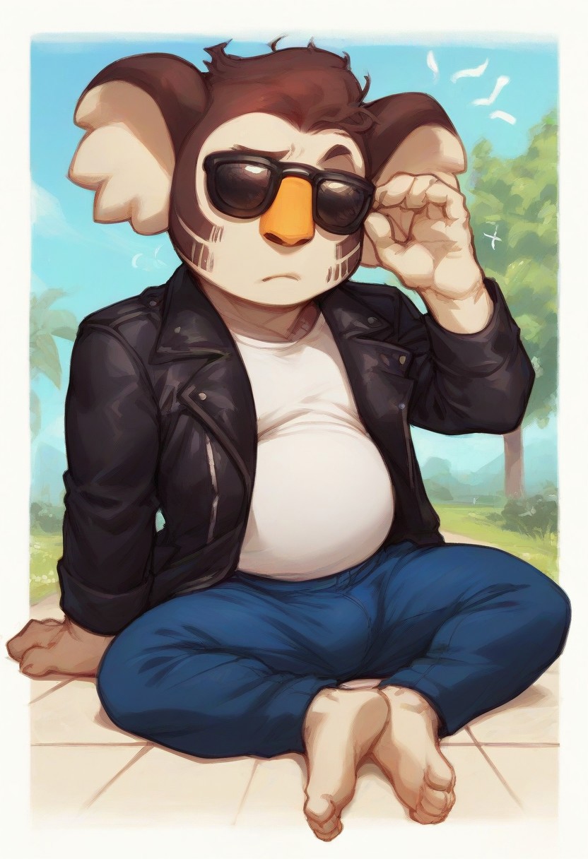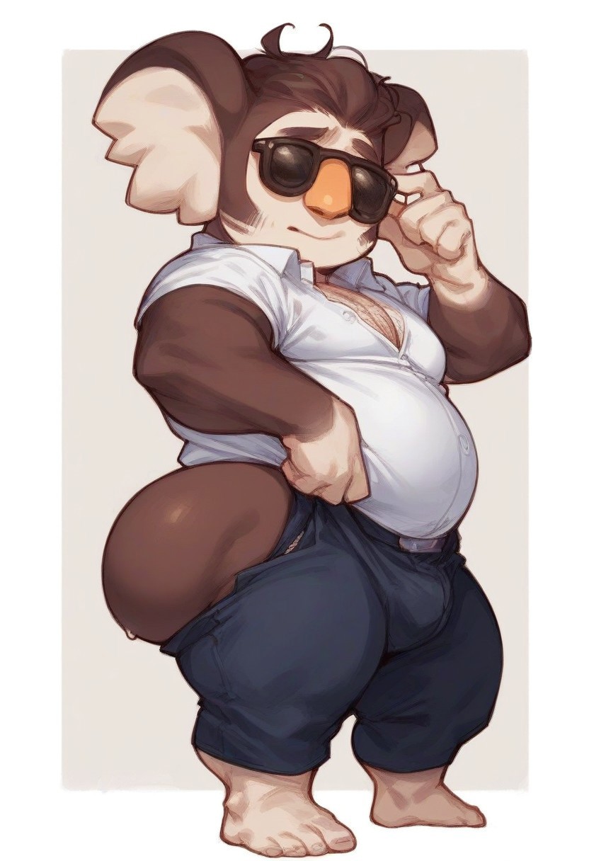 score_9, score_8_up, score_8, score_7_up, score_7, score_6_up, score_6, score_5_up, score_5, Furry, Eugene-animal crossing, Eugene, koala, sunglasses, brown body, brown fur, big ears, shortstack